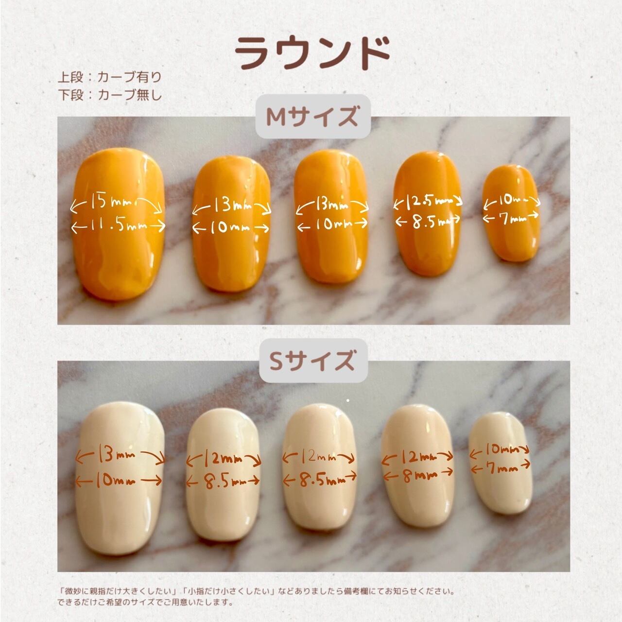 また、備考欄に「親指の幅が12mm」など記載いただきましたら、できるだけご都合の良いサイズに合わせてお届けいたします。